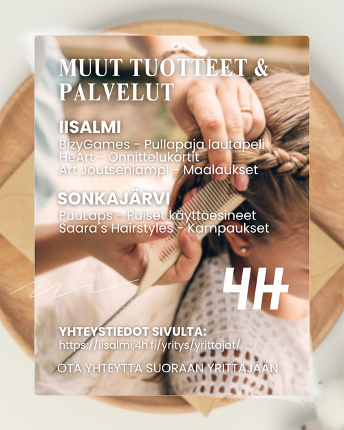 PuuLaps on Sonkajärveläinen kahden nuoren 4H-yritys, joka valmistaa suomalaisesta puusta, mm. laadukkaita leikkuulautoja ja paistinlastoja. Koivusta ja pihlajasta valmistetut tuotteet ovat yksilöllisiä, sillä jokainen puu on erilainen. Tuotteet ovat käsitelty myrkyttömällä ja hajuttomalla parafiiniöljyllä. Ajankohtaiset tarjoukset Instagramista & Facebookista. PuuLaps:in pojat tavoittaa: