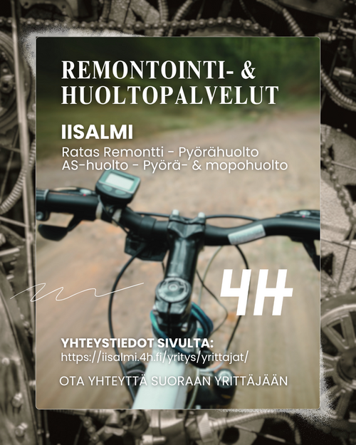 Nuori 4H-yrittäjä Ilari korjaa & huoltaa polkupyöriä Iisalmen keskustassa. Hinnaston löydät yrityksen Facebook sivuilta.